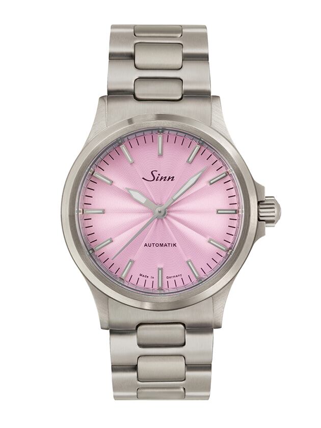 柔らかなピンクの文字盤は、インデックスと針の視認性が高く、瞬時に時間が確認できるため、機能性にも優れています。ステンレススチール製のブレスレットは、耐久性があり、長時間の使用でも心地よいフィット感を提供します。