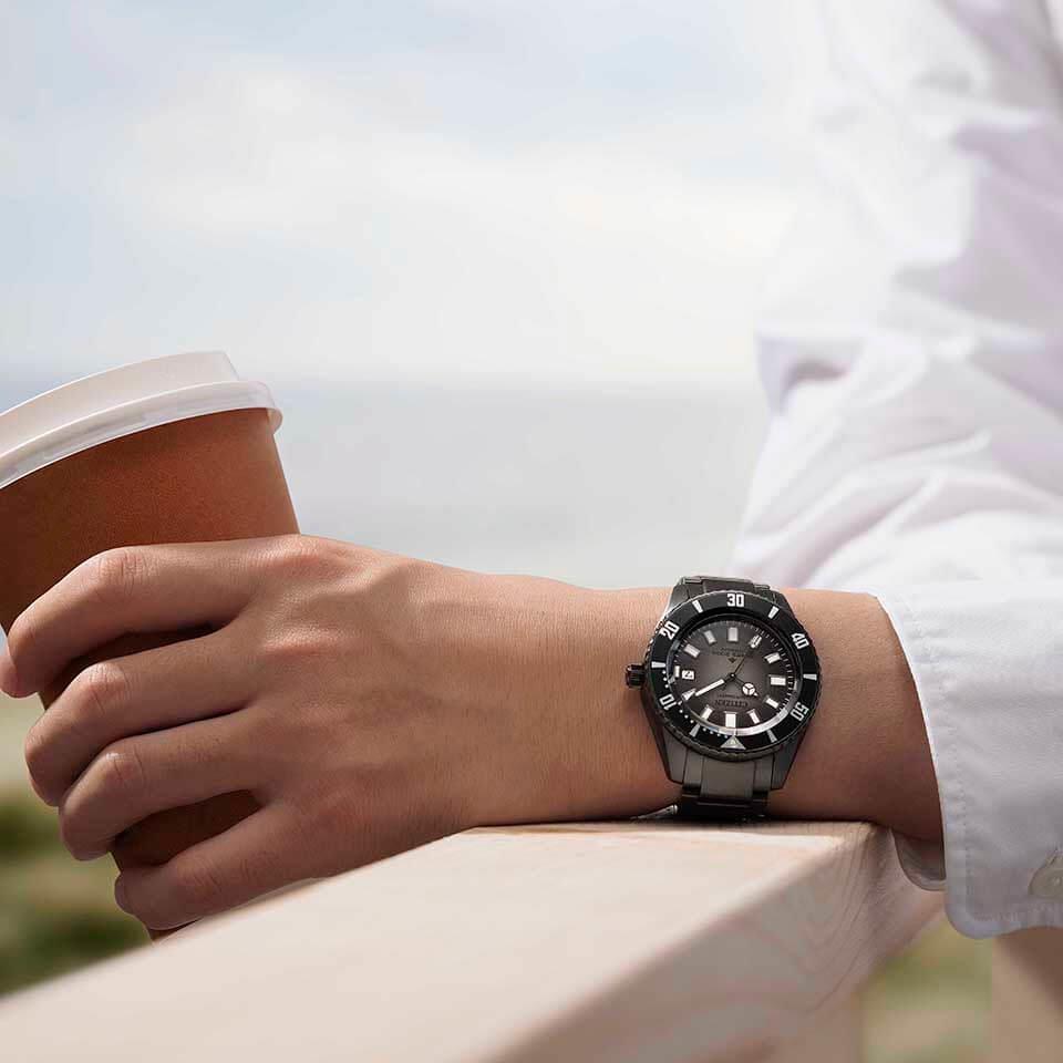 スーパーチタニウム製のケースとブレスレットは、軽量でありながら優れた耐久性を誇り、長時間の装着でも快適です。ダイバータイプのブラック文字盤は、視認性に優れ、バーインデックスが時間を正確に表示します。さらに、逆回転防止ベゼルを備えており、ダイバーに必要な機能をしっかりサポートします。