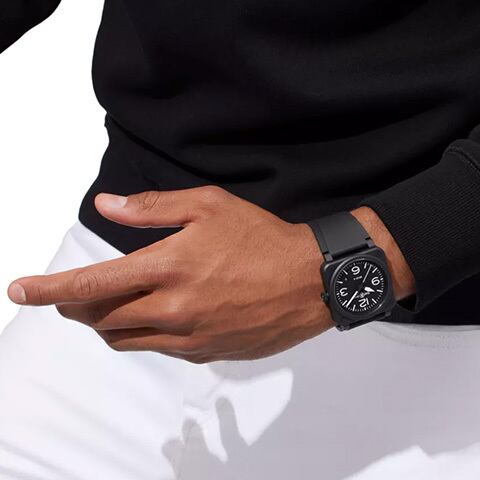 この【ベル&ロス国内正規品】Instruments NEW BR 03 BLACK MATTE BR03A-BL-CE/SRBは、洗練されたデザインと高い機能性を兼ね備えた魅力的な時計です。41mmの優れたサイズ感は手元を引き締め、ビーズブラストブラックセラミックのケースがスタイリッシュな印象を与えます!